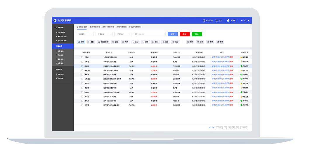 預(yù)警發(fā)布可根據(jù)實時及預(yù)測數(shù)據(jù)自動或人工生成預(yù)警策略。支持自定義內(nèi)容以微信、釘釘、短信、郵件、LED屏、語音廣播等多種形式將指定預(yù)警信息發(fā)布到指定響應(yīng)的設(shè)備和人員。